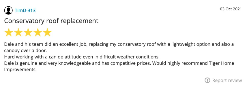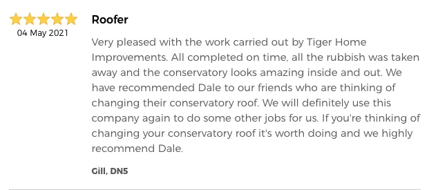 A solid conservatory roof installation from Tiger Home Improvements will take between 1-3 days from old roof removal to internal plaster finish. If the conservatory is particularly large it may take up to 5 days to complete.